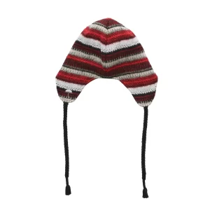 EARED BEANIE WITH CORDS.