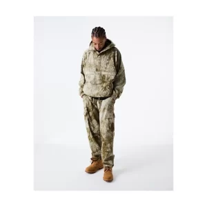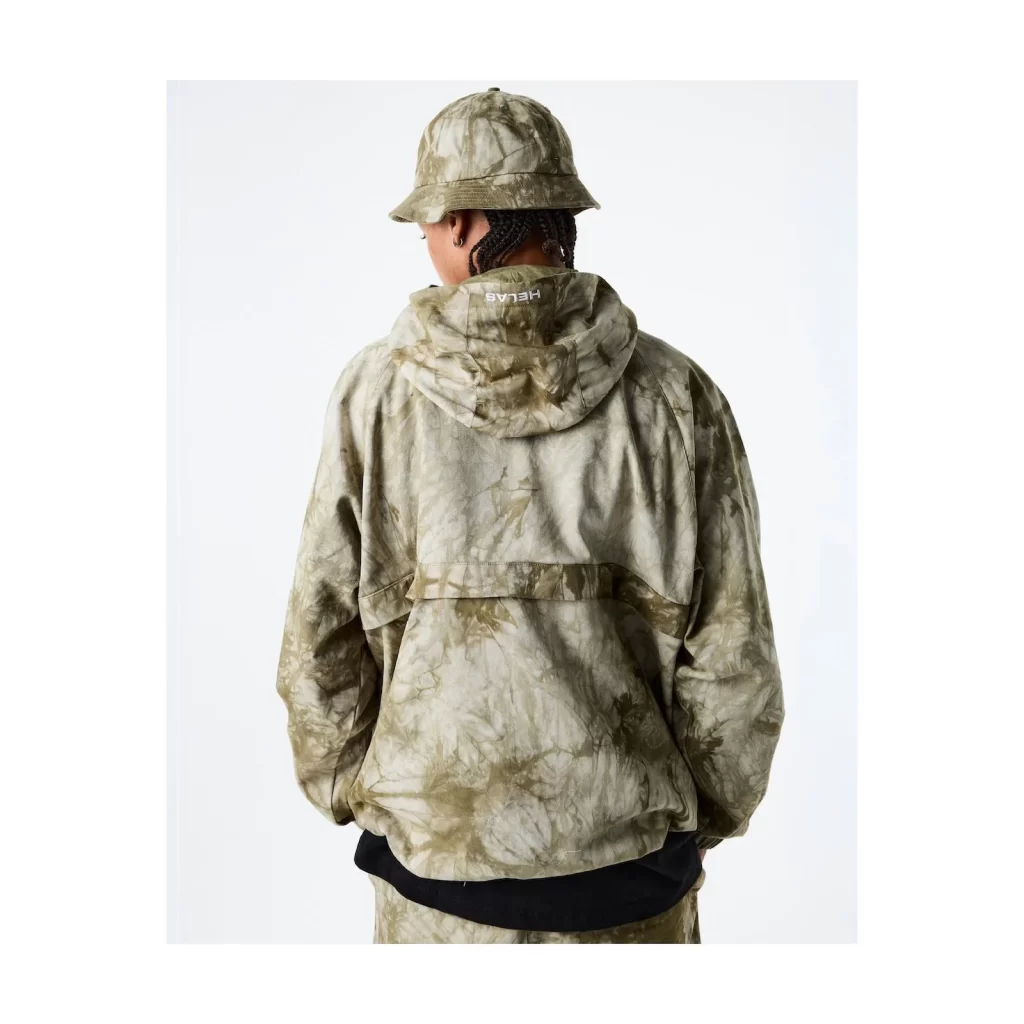 "REAL TREE" TIE DYE QUARTER ZIPPED HOODED JACKET WITH ZIPPED FRONT KANGURU POCKET.